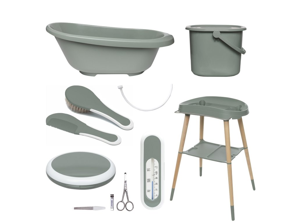 Sada obsahuje vaničku Sense a luxusný stojan z lakovaného buku, kýblik na plienky, sadu na manikúru, hrebeň a kefu, teplomer do vaničky a vypúšťaciu hadicu. Skrátka vaše kompletné vybavenie na starostlivosť a kúpanie!