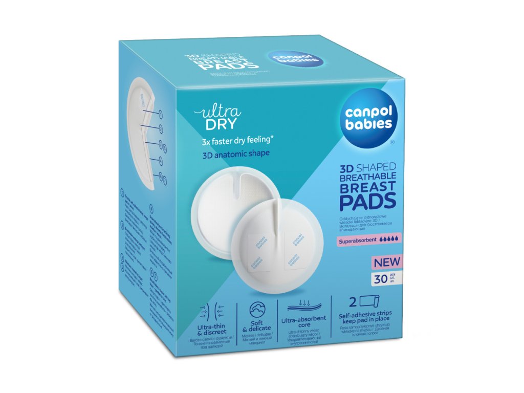 Priedušné jednorázové tampóny do podprsenky Canpol babies sú určené ženám v neskoršej fáze tehotenstva a dojčiacim matkám. Nedráždi citlivú pokožku prsníka ani bradavky. Mäkká absorpčná vrstva zadržuje vytekajúce mlieko a nepriepustná vonkajšia vrstva zabraňuje ušpineniu prádla. Samolepiaci pásik pomáha fixovať tampón na správnom mieste. Tampóny sa výborne prispôsobia tvaru prsníka a ich použitie je veľmi diskrétne. Dodávajú sa v balení po 30 kusoch.