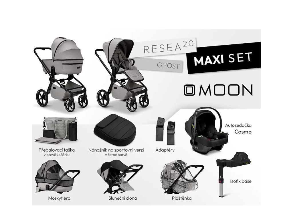 Pre rodičov, ktorí chcú mať všetko potrebné pohromade, je k dispozícii MAXI SET, ktorý okrem samotného kočíka obsahuje aj: