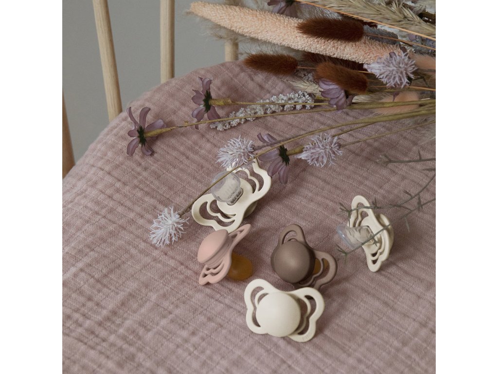 BIBS dobývajú celý svet. Jednoduché a štýlové. BIBS sú cumlíky navrhnuté a vyrábané v Dánsku s viac ako 40 ročnou tradíciou. Ich minimalistický škandinávsky dizajn, kvalita a široké farebné prevedenie sú pre BIBS cumlíky typické. Okrem jedinečného dizajnu dbá značka BIBS na to, aby boli cumlíky zdravotne nezávadné a napomáhali prirodzenému vývoju detí. BIBS Couture je exkluzívny ortodontický cumlík anatomického tvaru v štýlovom elegantnom dizajne v krásnej farebnej ponuke jemných, zemitých aj neutrálnych tónov. Anatomicky tvarovaná sacia časť je vyrobená zo 100%25-ného medicínskeho silikónu najvyššej kvality a vďaka jej zúženému tvaru v oblasti zhryzu je na zúbky a ďasná vyvíjaný minimálny tlak, čím je zachovaný ich prirodzený vývoj. Cumlík je navrhnutý tak, aby nedráždil citlivú pokožku bábätka. Zloženie: Sacia časť: 100%25 silikón najvyššej kvality Ostatné časti: polypropylén (PP) Bez BPA, PVC, ftalátov a iných škodlivých látok. Vyrobené v Dánsku. Testované v Consumer Lab Denmark. V súlade s európskym štandardom EN 1400+A2. Veľkosti: BIBS Couture sú k dispozícii v 2 veľkostiach. Veľkosť 1: 0 – 6 mesiacov Veľkosť 2: 6 – 36 mesiacov