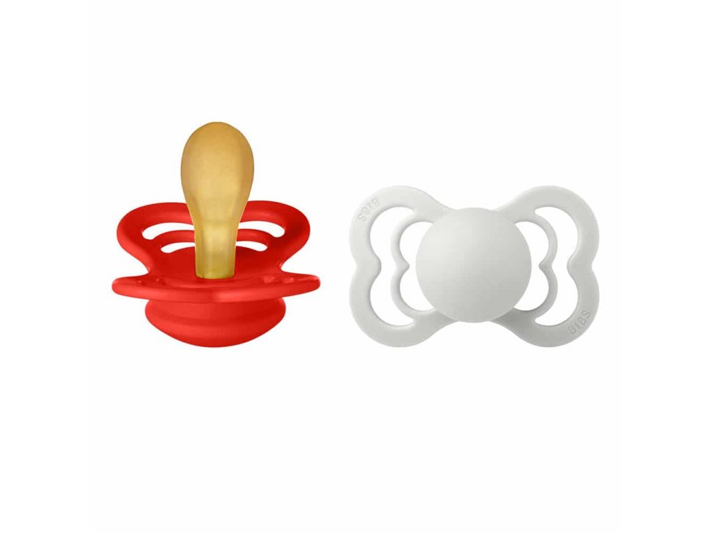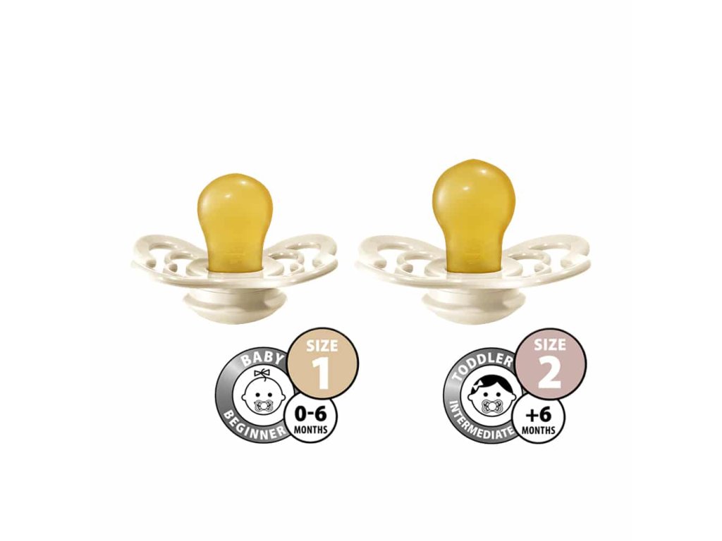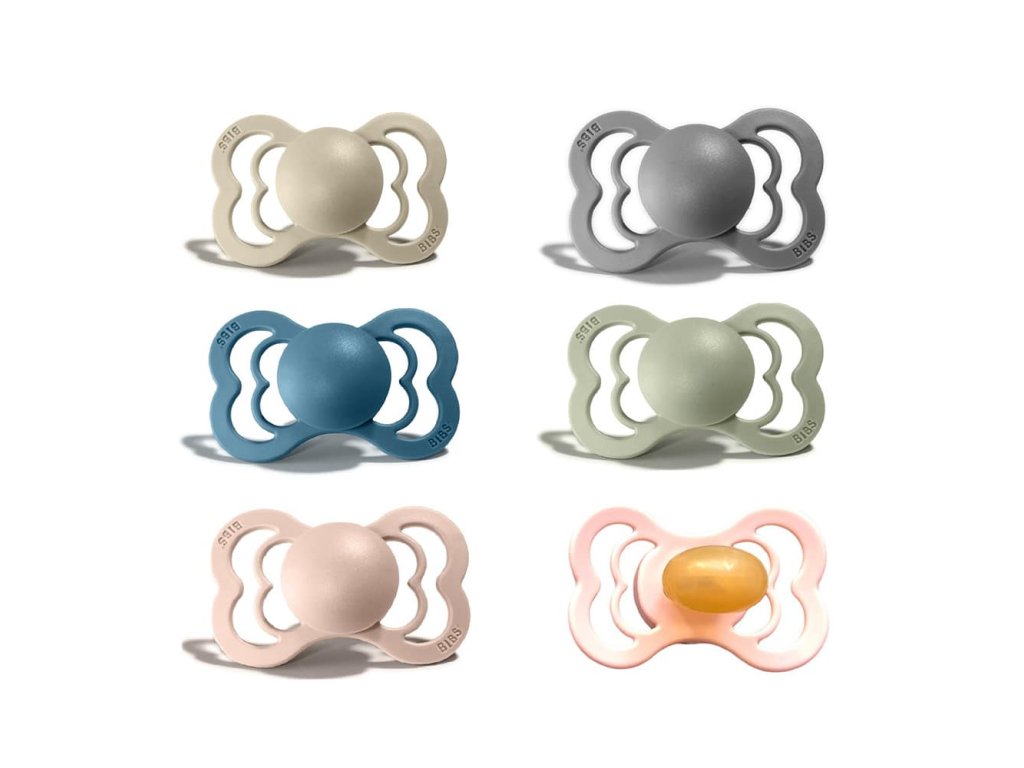 BIBS dobývajú celý svet. Jednoduché a štýlové. BIBS sú cumlíky navrhnuté a vyrábané v Dánsku s viac ako 30 ročnou tradíciou. Ich minimalistický škandinávsky dizajn, kvalita a široké farebné prevedenie sú pre BIBS cumlíky typické. Okrem jedinečného dizajnu dbá značka BIBS na to, aby boli cumlíky zdravotne nezávadné a napomáhali prirodzenému vývoju detí. BIBS Supreme je exkluzívny cumlík v štýlovom elegantnom dizajne v krásnej farebnej ponuke jemných, pastelových, zemitých aj neutrálnych farieb. Sacia časť je symetricky tvarovaná, vyrobená zo 100%25-ného prírodného kaučuku, ktorý je mimoriadne pružný a mäkký zároveň, odolný proti vytvoreniu trhlín a odštiepeniu malých kúskov. Ostané časti sú vyrobené zo zdravotne nezávadného polypropylénu (PP). Cumlík je navrhnutý tak, aby nedráždil citlivú pokožku bábätka. Vďaka mäkučkému kaučuku a zabudovanému vzduchovému ventilu dieťa cumlík ľahko stláča a formuje v ústach, čím je zachovaný prirodzený vývin podnebia, zúbkov a ďasien detí. Prečo deti obľubujú cumlíky BIBS? Extra ľahučký. Výnimočná chuť prírodného kaučuku, deti ho prirodzene uprednostňujú pred syntetickými materiálmi ako je silikón. Prečo rodičia obľubujú cumlíky BIBS? Dieťa saje len 100%25 prírodný bezpečný materiál – kaučuk vyrobený z miazgy stromu Hevea. Vďaka špeciálnemu tvaru je minimalizovaný dotyk cumlíka s pokožkou, pokožka zostáva suchá a nevznikajú podráždenia. Štýlový dizajn v krásnych farebných prevedeniach. Vyrobené v EU. Zloženie: Sacia časť: 100%25 prírodný kaučuk Ostatné časti: polypropylén (PP) Bez BPA, PVC, ftalátov a iných škodlivých látok. Vyrobené v Dánsku. Testované v Consumer Lab Denmark. V súlade s európskym štandardom EN 1400+A1. Veľkosti: BIBS Supreme sú k dispozícii v 2 veľkostiach. Veľkosť 1: 0-6 mesiacov Veľkosť 2: od 6 mesiacov