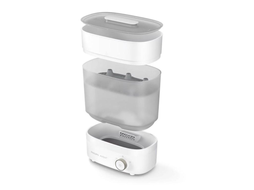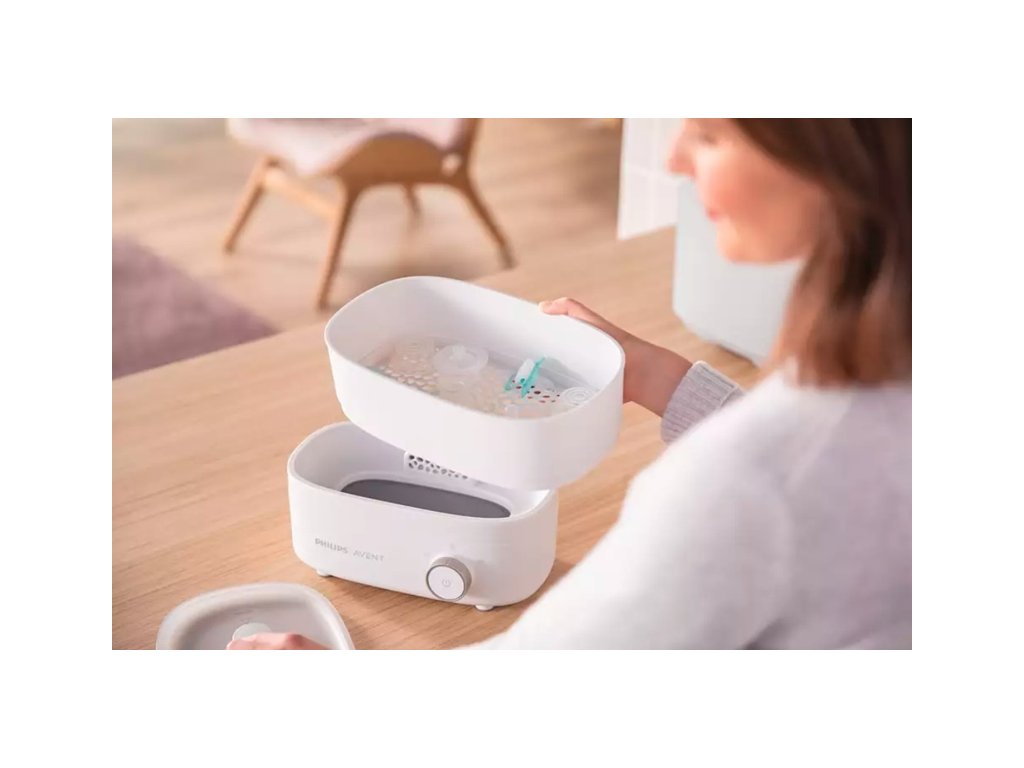 Vďaka prispôsobiteľnej veľkosti zaberie elektrický parný sterilizátor Philips AVENT v kuchyni minimálne množstvo priestoru a súčasne sa dokonale hodí pre predmety určené na sterilizáciu – či už je ich len zopár, alebo celá kopa.