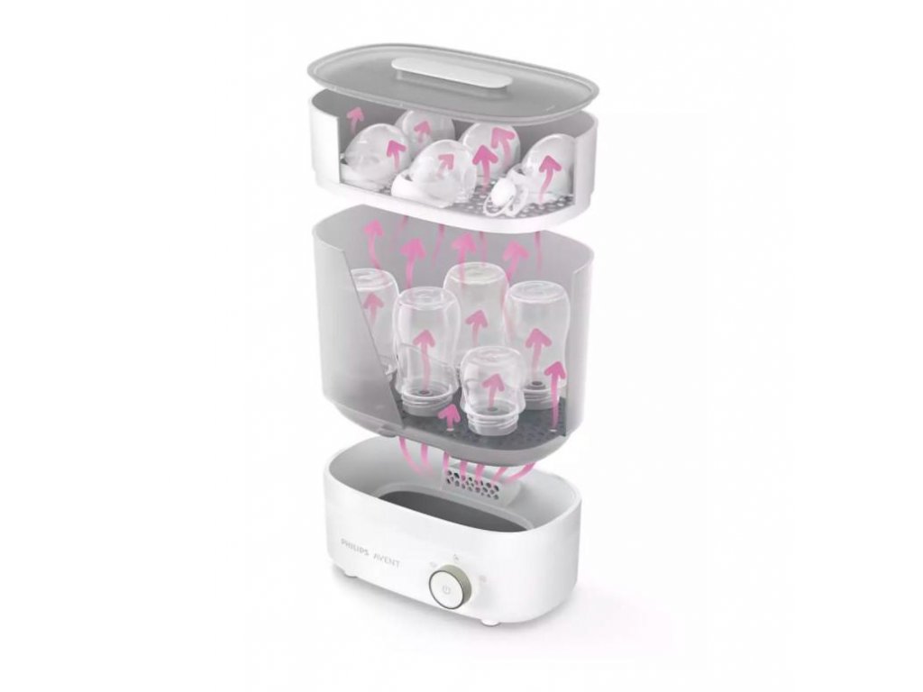 Príprava fliaš na ďalšie kŕmenie vášho dieťaťa trvá iba 40 minút. Po výkonnej parnej sterilizácii fľaše a príslušenstvo vysuší sústredeným prúdom filtrovaného vzduchu, takže sú pripravené na okamžité použitie.