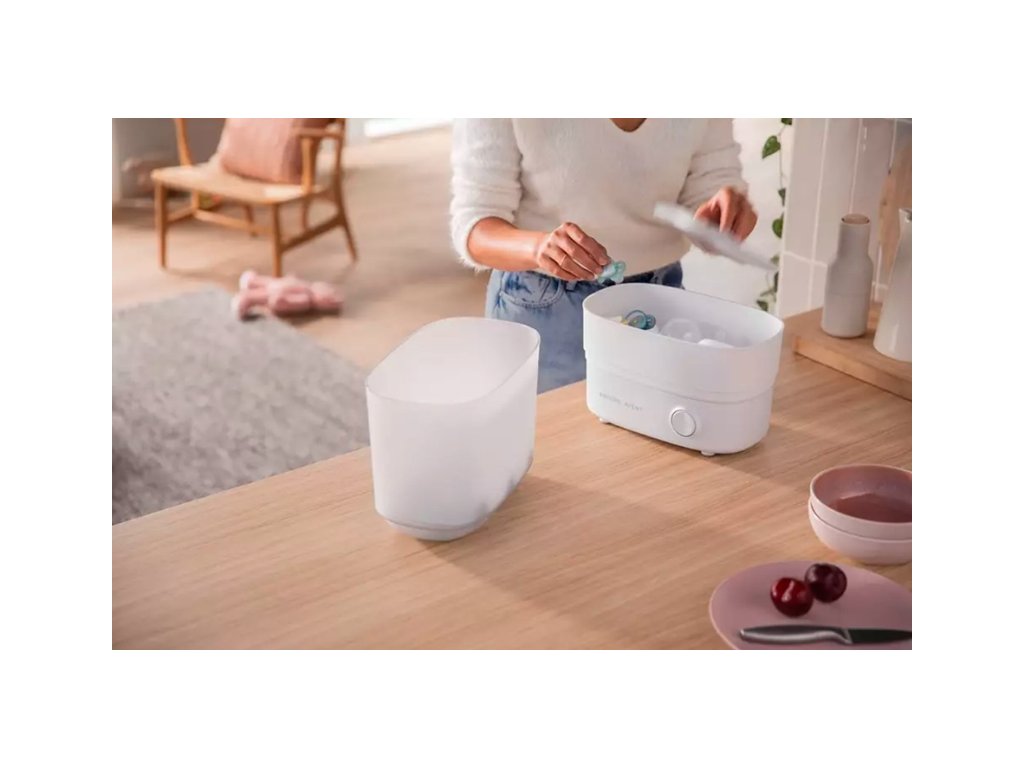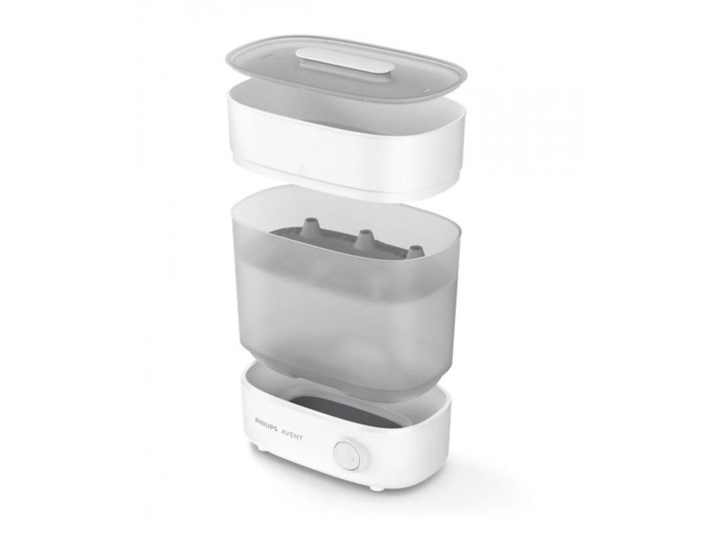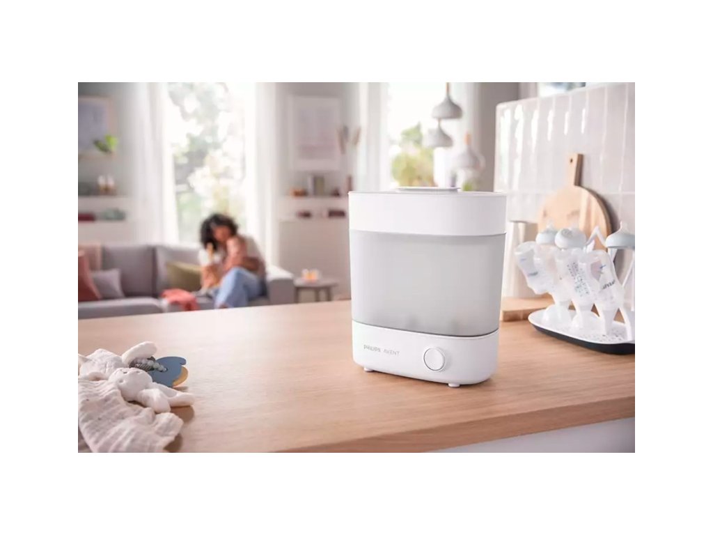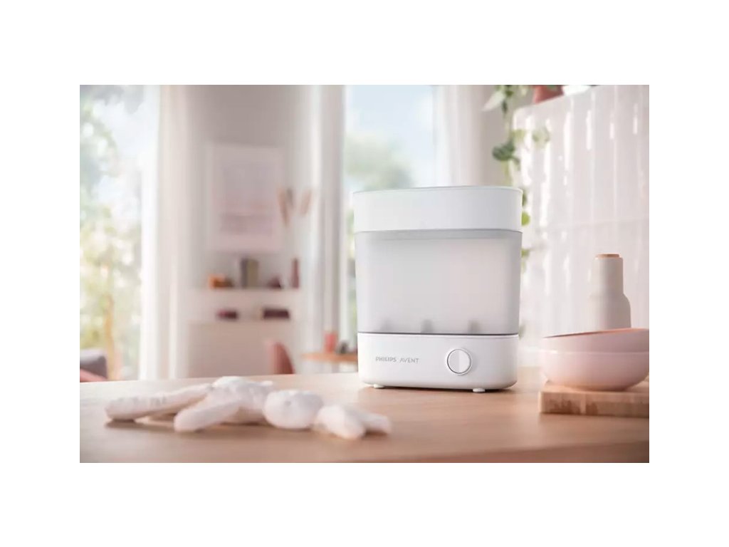 Vďaka prispôsobiteľnej veľkosti zaberie elektrický parný sterilizátor Philips AVENT v kuchyni minimálne množstvo priestoru a súčasne sa dokonale hodí pre predmety určené na sterilizáciu – či už je ich len zopár, alebo celá kopa.