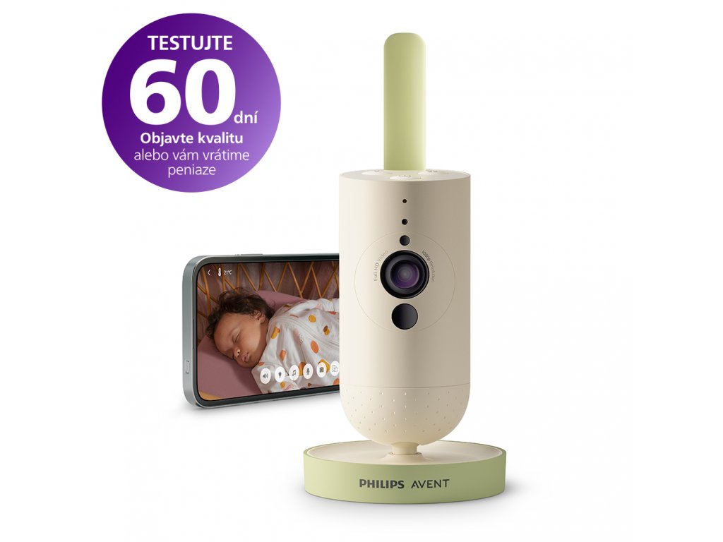 Vždy blízko vášho dieťaťa. Dozor nad dieťatkom doma i na cestách. S pripojenou detskou kamerou Philips Avent môžete bezpečne a odkiaľkoľvek dohliadať na svoje dieťa. Naša kamera HD, funkcia skutočného spätného hovoru a systém Secure Connect vás udržia v spojení s dieťatkom odkiaľkoľvek pomocou aplikácie Baby Monitor+. Vlastnosti: - Monitorujte svojím spôsobom - Zvuky na usadenie a upokojenie - Ručné otočenie kamery umožňuje úplný pohľad na detskú izbu - Zachyťte každý vzácny okamih pomocou aplikácie - Podporte svoju rodinu - Nikdy nie príliš teplo ani chladno, vždy tak akurát - Pokojný spánok s upokojujúcim nočným svetlom - Sloboda, flexibilita, pohodlie a spokojnosť - Súčasne hovorte a počúvajte svoje bábätko - Vidíte každé krútenie, počujete každé chichotanie - Pocit istoty vo dne i v noci kdekoľvek - Navrhnuté tak, aby ste vždy boli v spojení s bábätkom - Kamera s rozlíšením Full HD, nočným videním a digitálnym zoomom