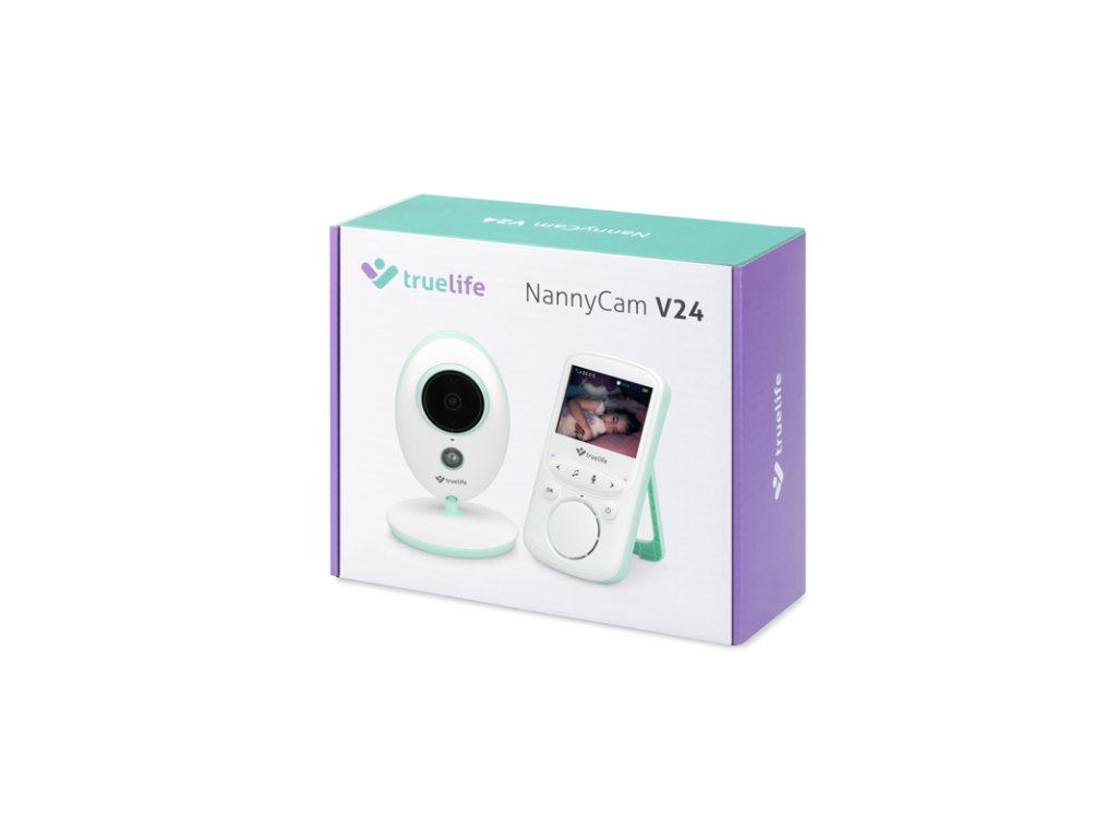 TrueLife NannyCam V24 je digitálna video pestúnka s prehľadným farebným 2,4 palcovým LCD displejom, izbovým teplomerom, budíkom, automatickým nočným režimom vrátane VOX režimu a s vysoko kvalitným prenosom zvuku i obrazu s dosahom až 300 metrov.